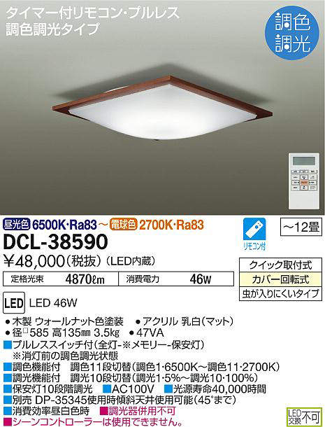 【最安値挑戦中!最大25倍】大光電機(DAIKO) DCL-38590 シーリングライト LEDシーリングライト 12畳 調色 調光 リモコン付 シーリング LED内蔵 タイマー付リモコン・プルレス 〜12畳 ウォールナット