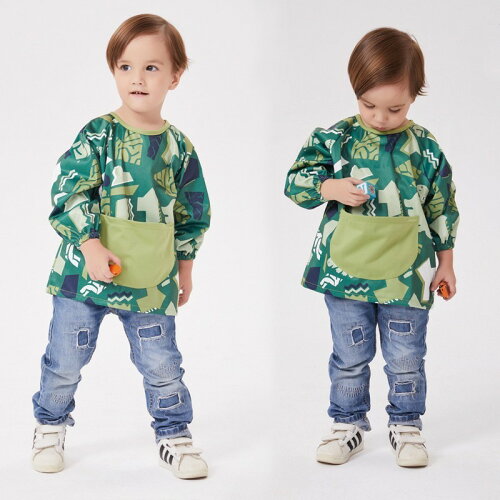 送料無料スモック 防水 長袖 お食事エプロン 遊び着 動物柄 恐竜 子供用 キッズ ベビー 小学生 幼稚園 保育園 ポケット 習字 書道 図工 男の子 女の子 汚れ防止 女児 男児 児童 こども用 子ども用 高学年 100cm 110cm 120cm 1
